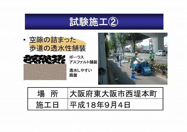 2つ目は、目詰まりにより機能低下した歩道透水性舗装