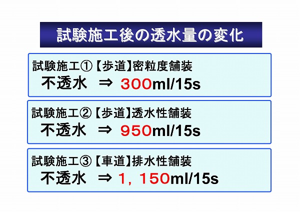 この試験施工の結果ですが、3箇所とも実施前は不透水